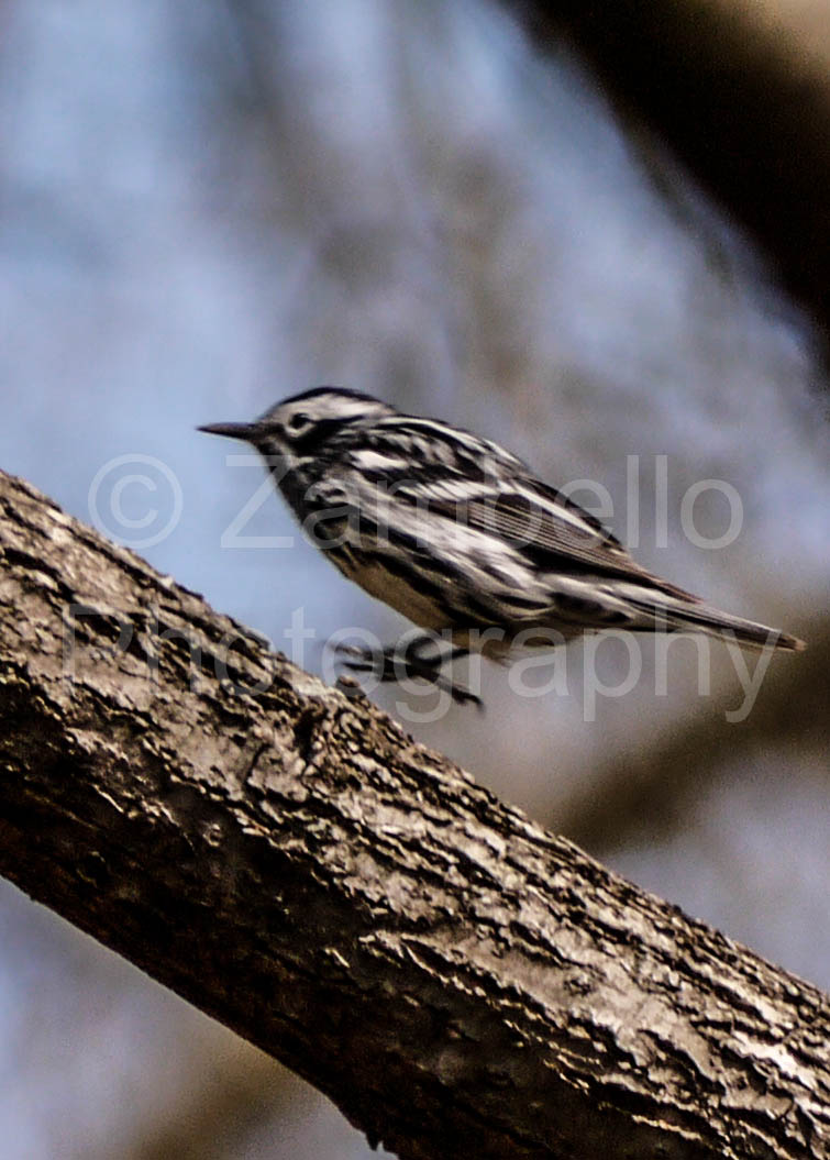 Though it was midday, a friend and I heard birds immediately. I saw a Brown Creeper skulking up a tree trunk, an Eastern Phoebe bobbing its tail, and numerous White-throated Sparrows. I love all those birds, but they were also species that had been present all winter. It wasn’t until I saw a black and white-striped form running up and down a tree branch that I knew spring migrants had truly arrived.