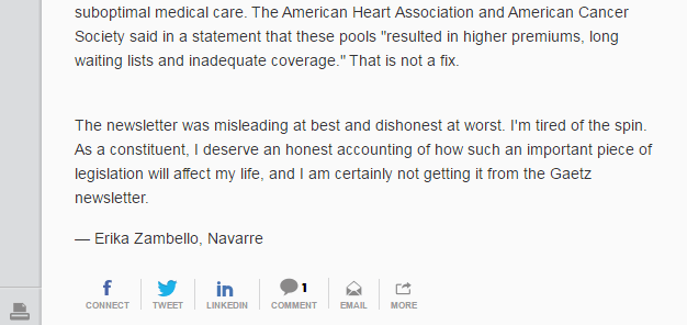 In his most recent newsletter, Congressman Gaetz wrote, “Please know that the bill absolutely protects people with low incomes, elderly people and people with pre-existing conditions.” This is simply not true.