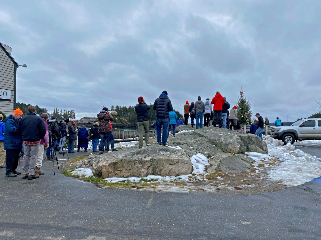 My fingers and toes vibrated with anticipation as I slid out of the passenger-side door on a small road in Georgetown, Maine, about 45 miles northeast of Portland. Camera bag slung over my shoulder and binoculars in hand, I half-walked, half-jogged down the street toward the town’s wharf, my stomach clenching more with every step. My mother and I had driven more than an hour to be here on New Year’s Eve, furiously refreshing the Maine Audubon and The Birdist Twitter feeds over and over to answer one simple question: Was the Steller’s Sea-Eagle still here?